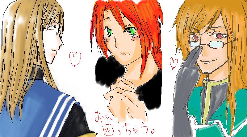 次がみなづきしゃんw ジェイドの髪の毛ひっぱってるハァハァ でもジェイドちゃっかりルークの胸から手を離さない……!!!!